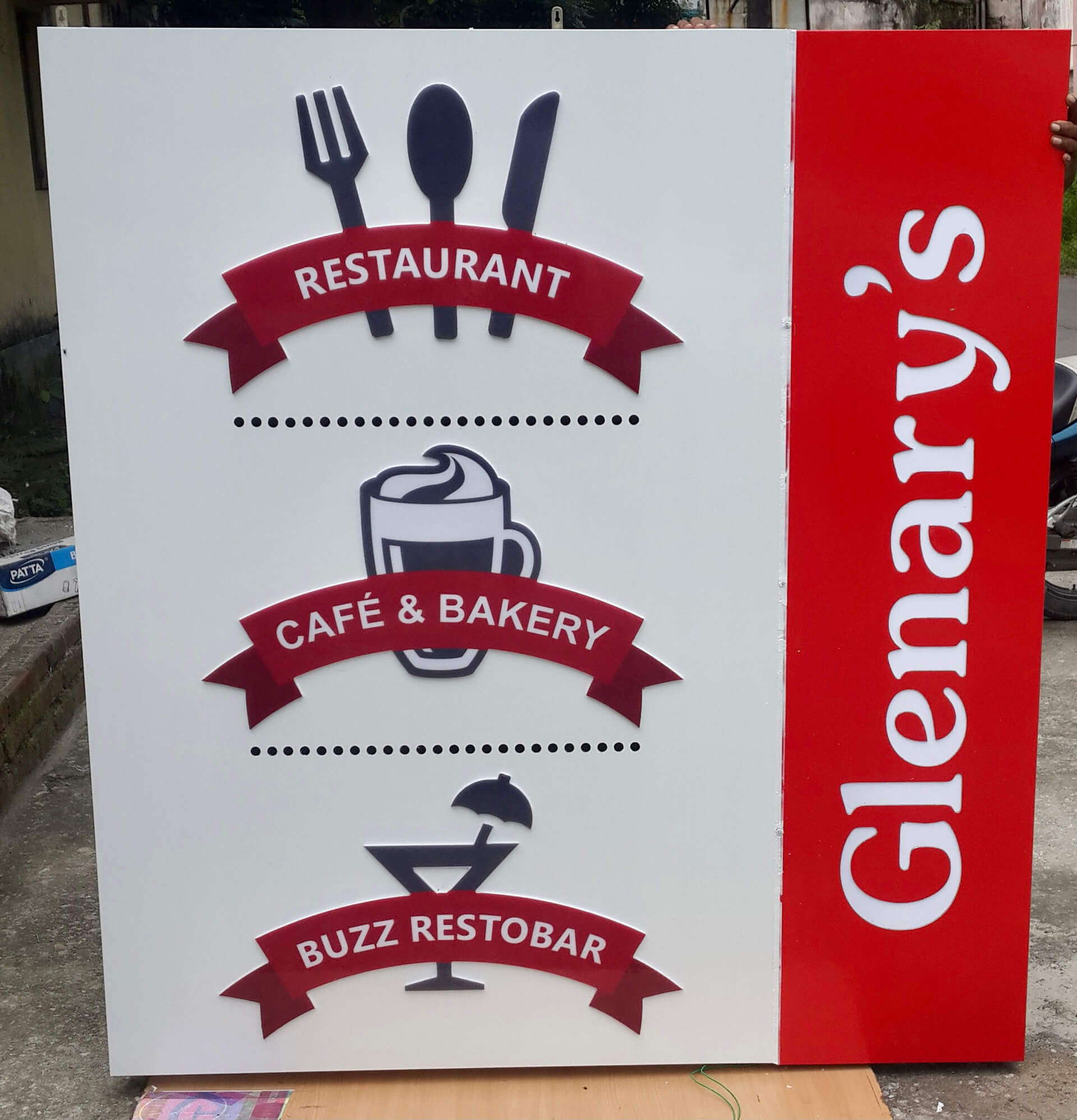 Acrylic sheets have a glassy appearance but they are not brittle, hence, more durable. They come in all the colours starting from transparent to ordinary colours to fluorescent colours. They are easy to handle as they can be cut, pasted, drilled, bolted and cast. They make the most customizable signs as they can be moulded, engraved and embossed by using heat. These signs can also be custom-built in terms of lighting, as in, they can be backlit or front lit. Acrylic signs now-a-days dominate the signage world as they are cheaper, more personalised and are light-weight